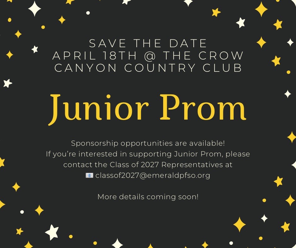 If you’re interested in supporting Junior Prom, please contact the Class of 2027 Representatives at classof2027@emeraldpfso.org